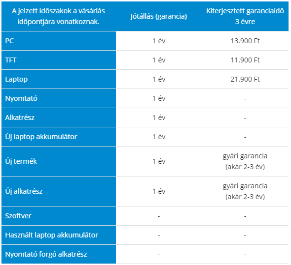 Az egyes termékekre milyen jótállási határidő vonatkozik?
